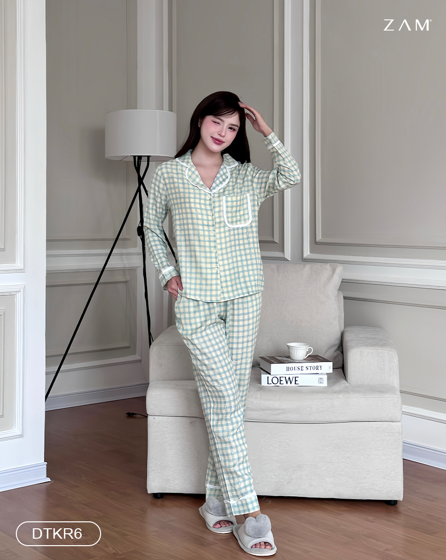 MÃ DTKR - BỘ DÀI TAY KẺ VISCOSE PHỐI REN