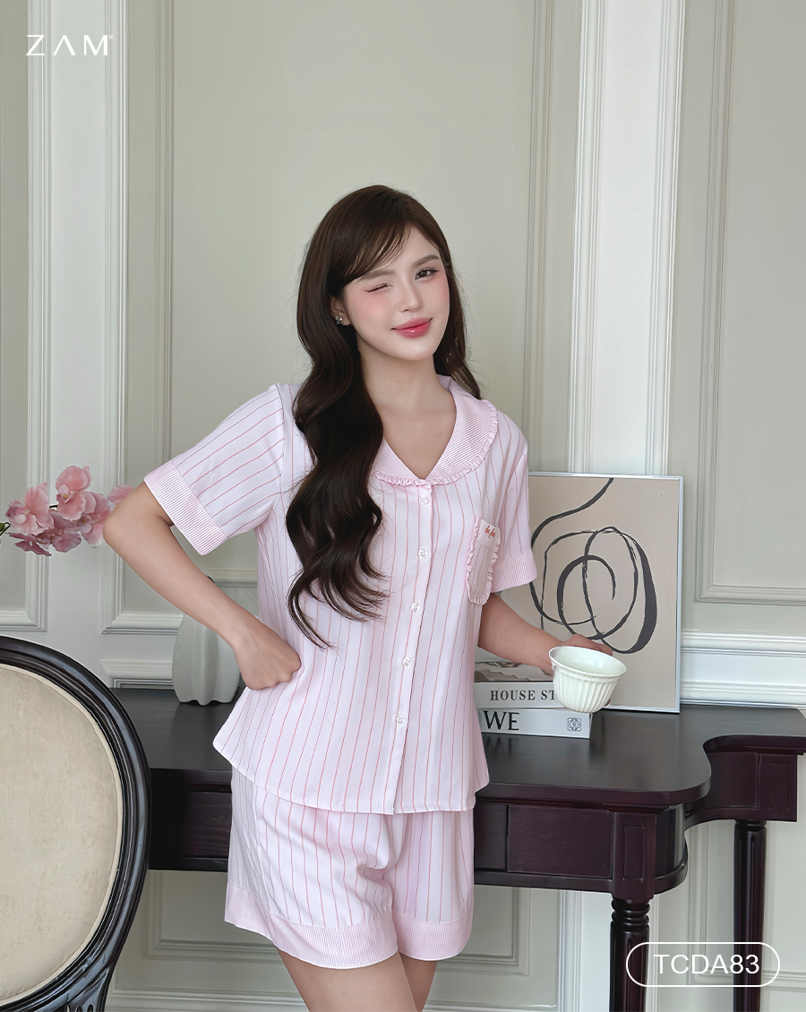 MÃ TCDA83 - BỘ NGẮN TAY QUẦN ĐÙI TẰM KẺ HỒNG