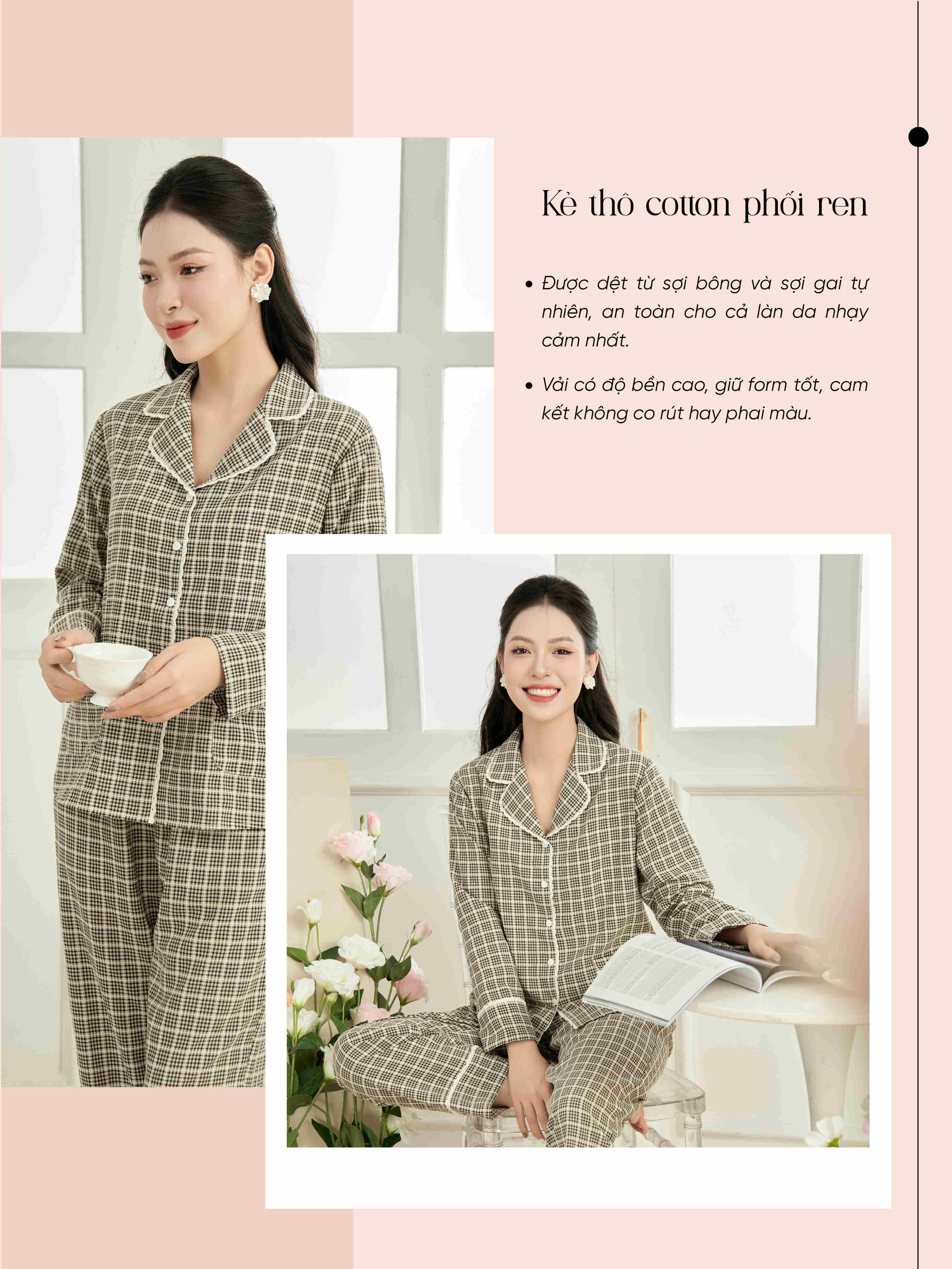 Luôn đặt chất lượng lên hàng đầu để mang đến cho khách hàng những trải nghiệm tuyệt vời nhất, các thiết kế mặc nhà thuộc BST CHANGING SEASONS sử dụng chất vải thô cotton được trải qua một quy trình xử lý phức tạp với nhiều công đoạn để mang đến những sợi vải đạt chuẩn cùng các ưu điểm nổi bật: nhẹ, mềm, thấm hút cực tốt, thân thiện với làn da và có độ bền cao.
