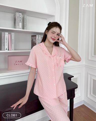 MÃ CLDB - BỘ NGẮN TAY QUẦN DÀI ĐŨI VÂN MÂY VIỀN BÈO CHẤM BI