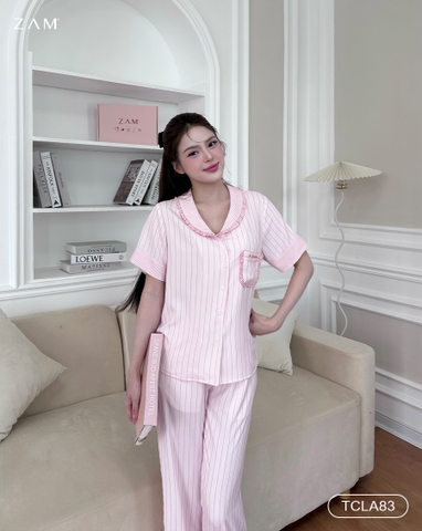 MÃ TCLA83 - BỘ NGẮN TAY QUẦN DÀI TẰM KẺ HỒNG