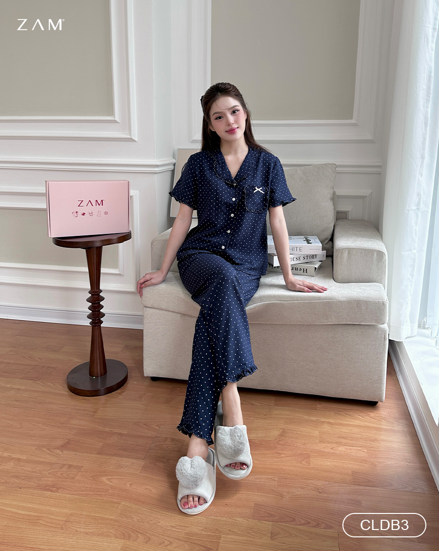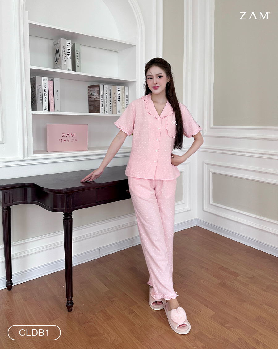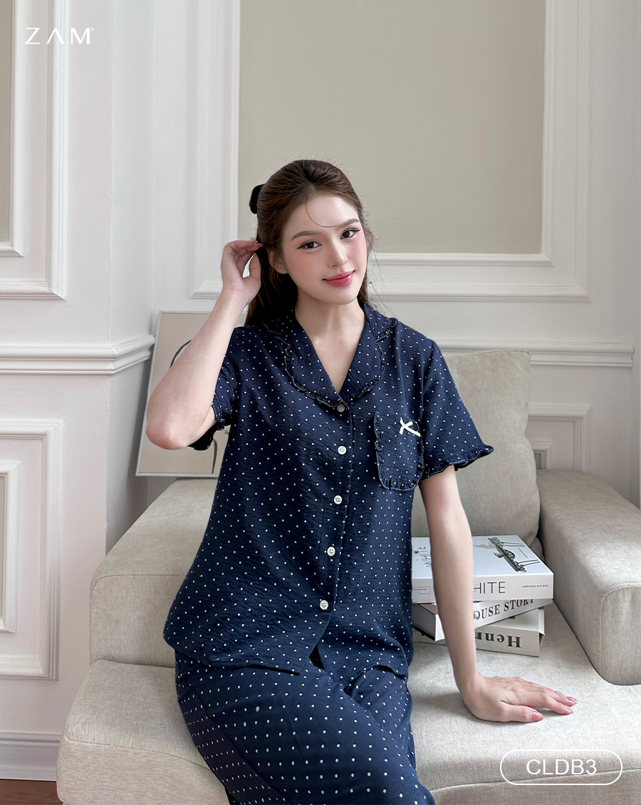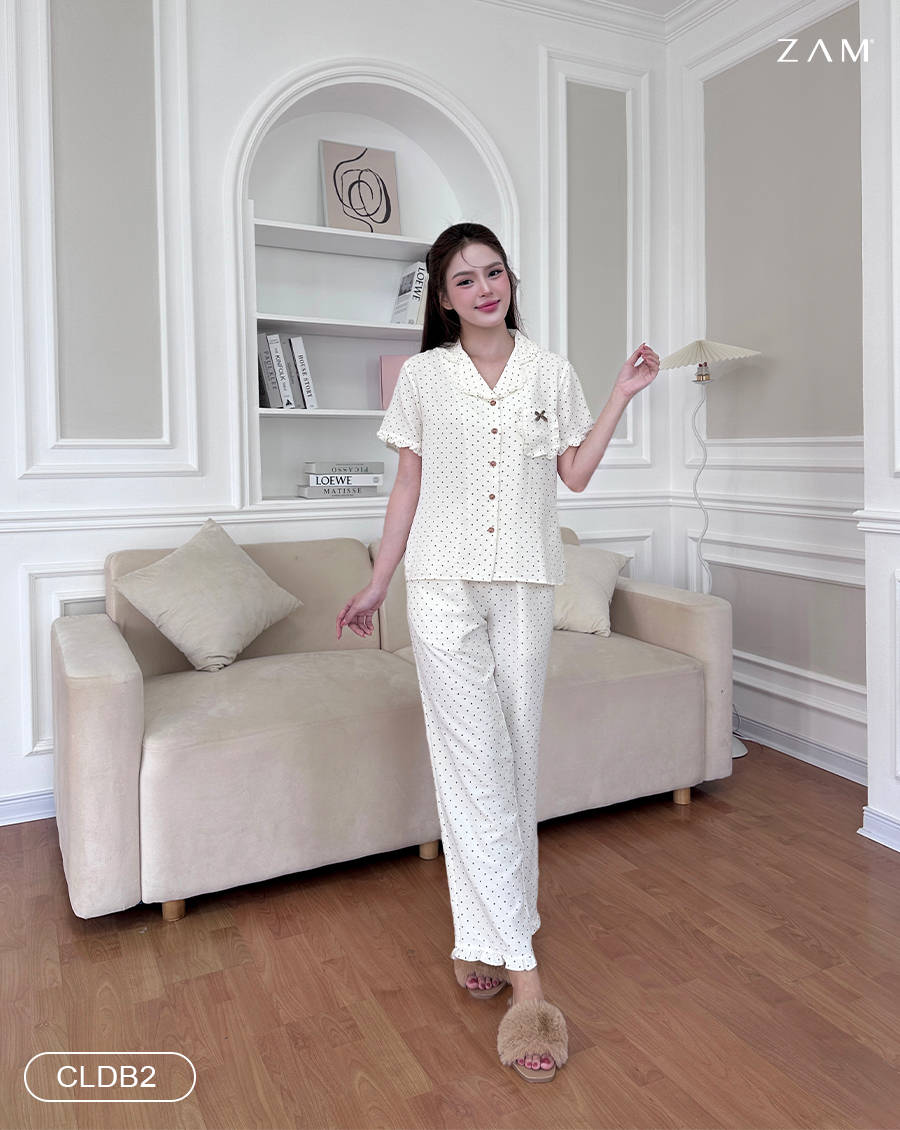 MÃ CLDB - BỘ NGẮN TAY QUẦN DÀI ĐŨI VÂN MÂY VIỀN BÈO CHẤM BI