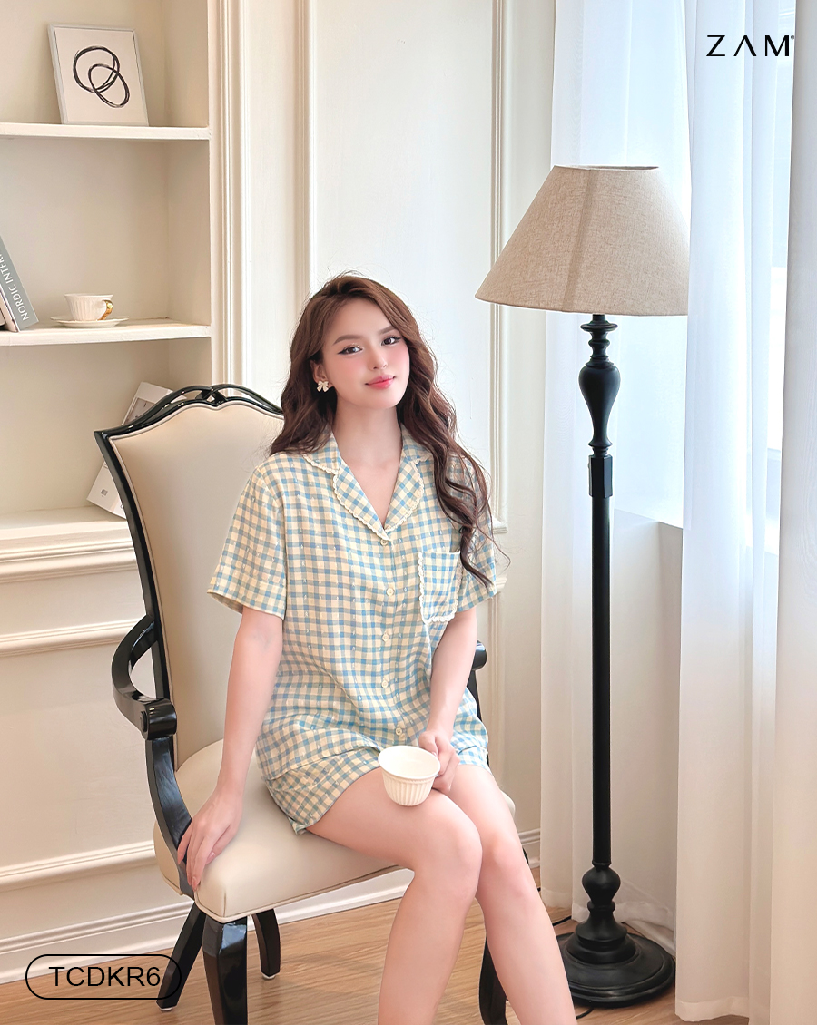 MÃ TCDKR - BỘ NGẮN TAY QUẦN ĐÙI KẺ VISCOSE PHỐI REN